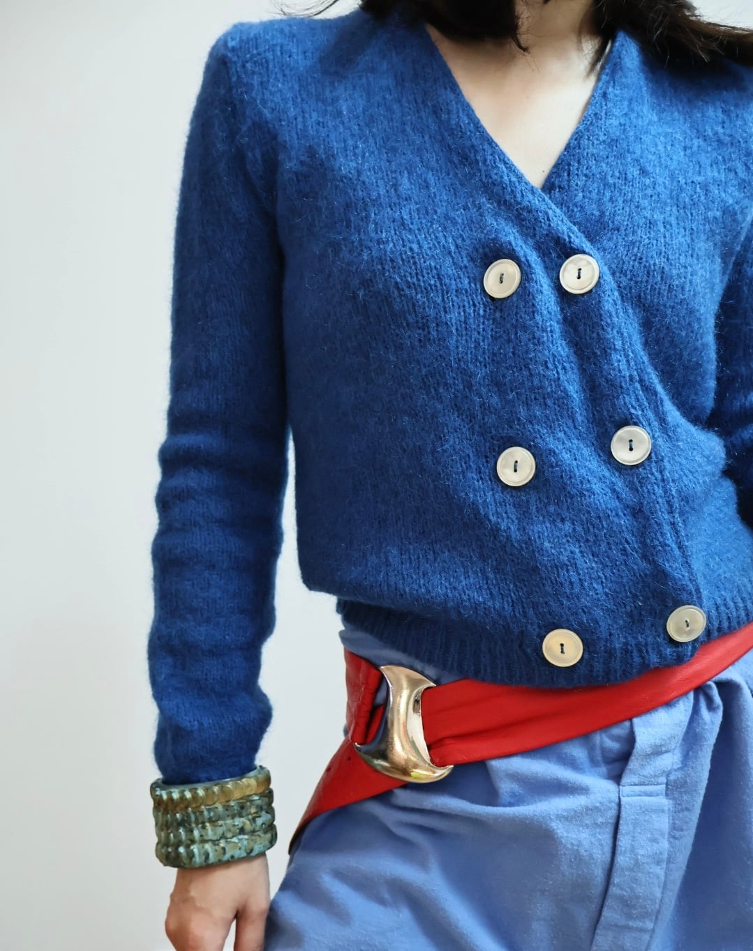 深みのあるブルーが美しいヴィンテージのウールカーディガン。柔らかな質感とあたたかみのあるウール素材で、これからの季節にぴったりです。