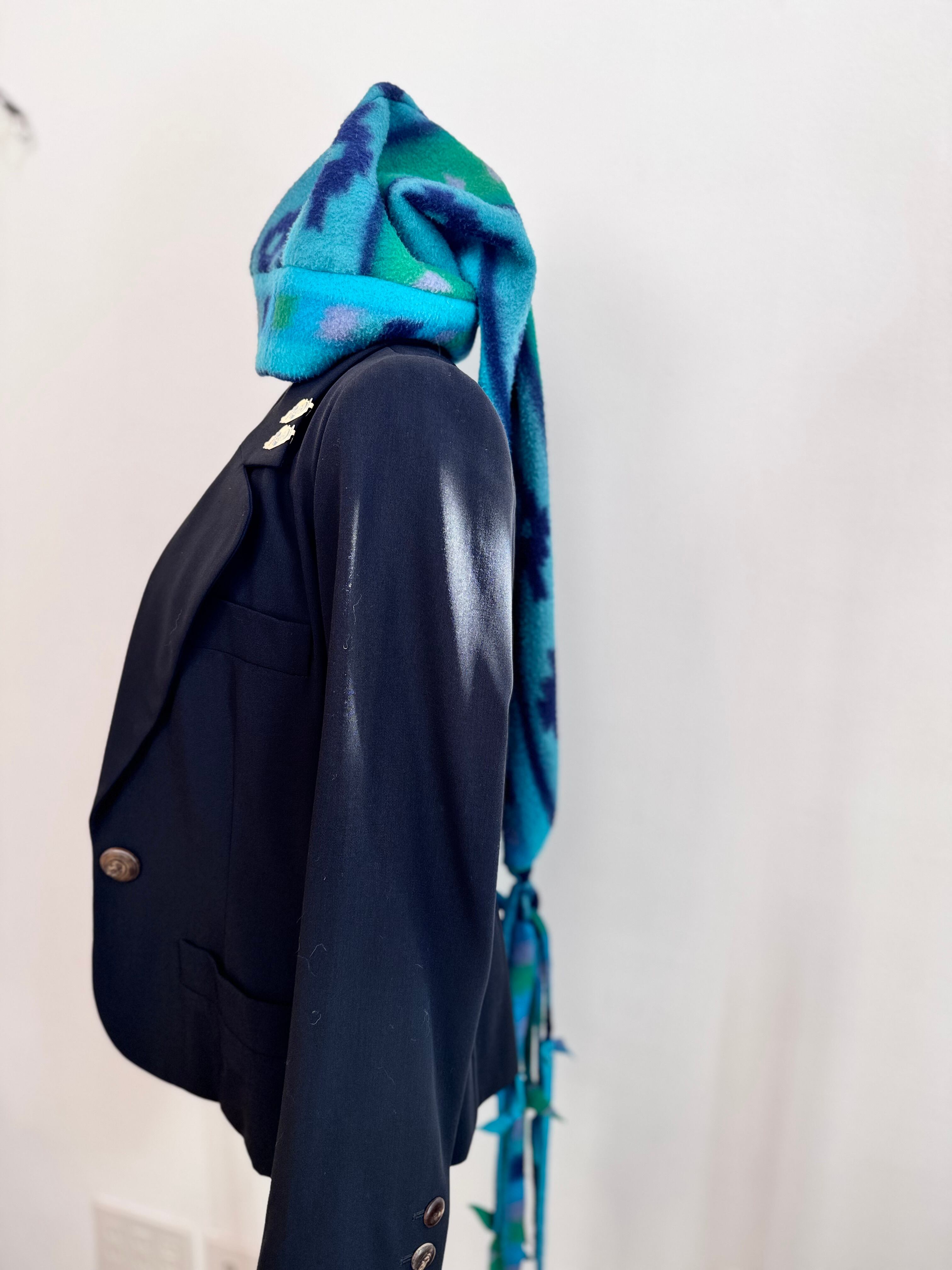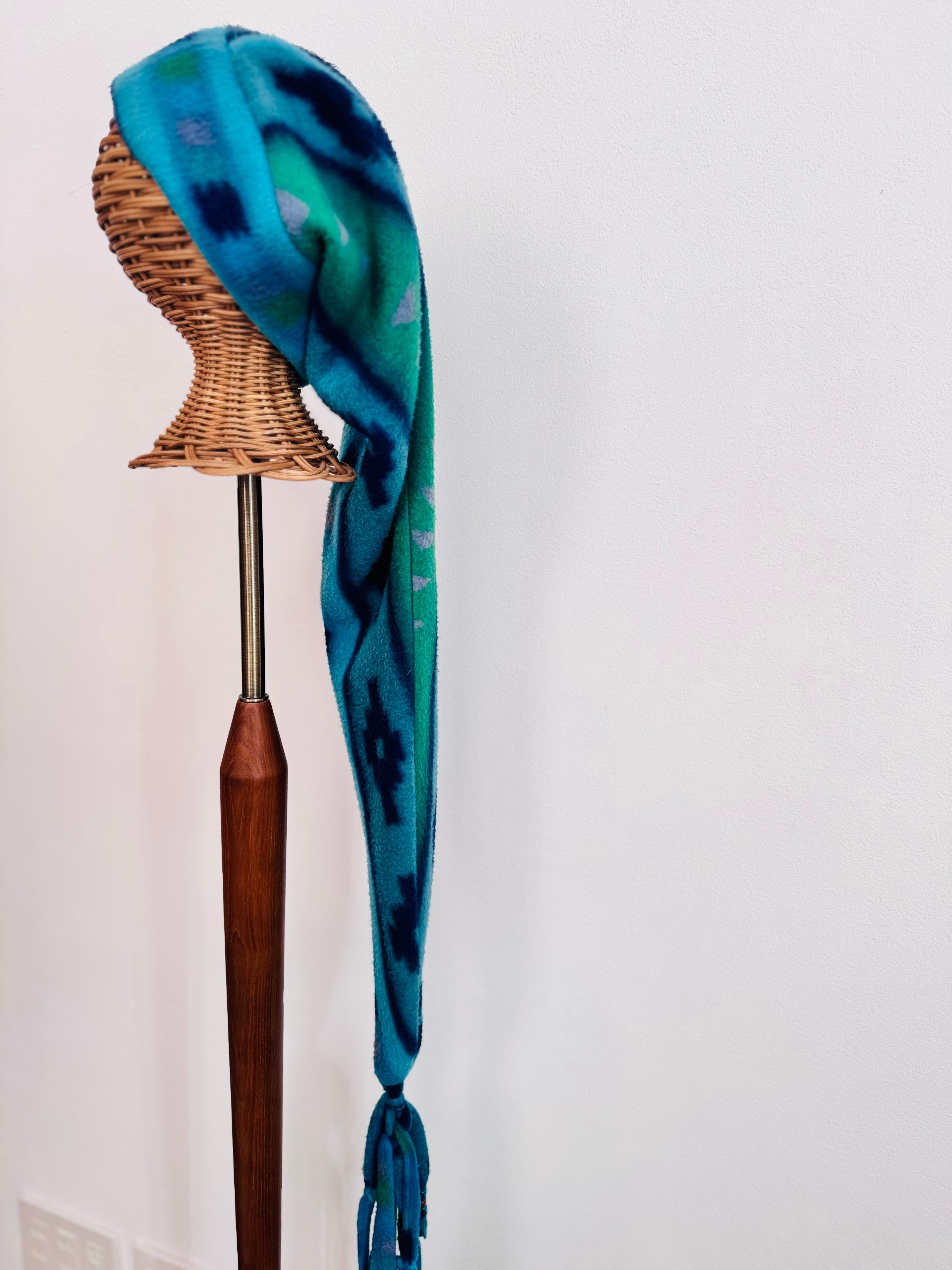 フリースならではの軽さと、ふわっとした肌あたり。全長140㎝のlongフリース帽子です。