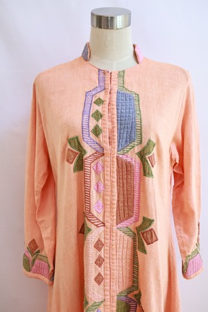 パッチワークと刺繍が前と袖口に施されています。